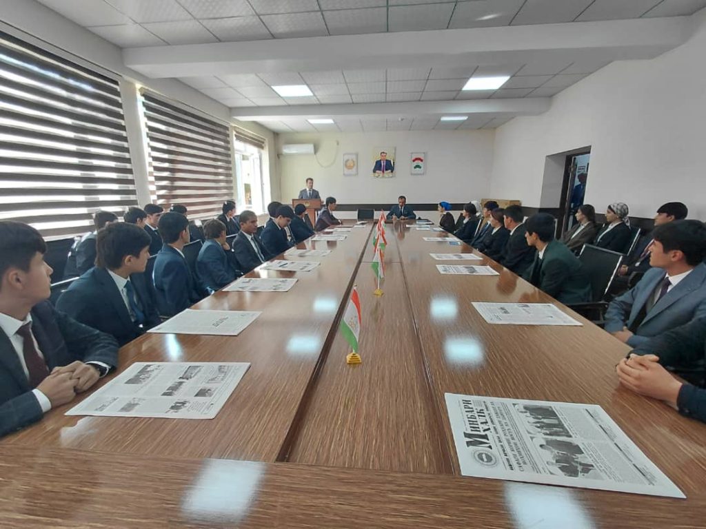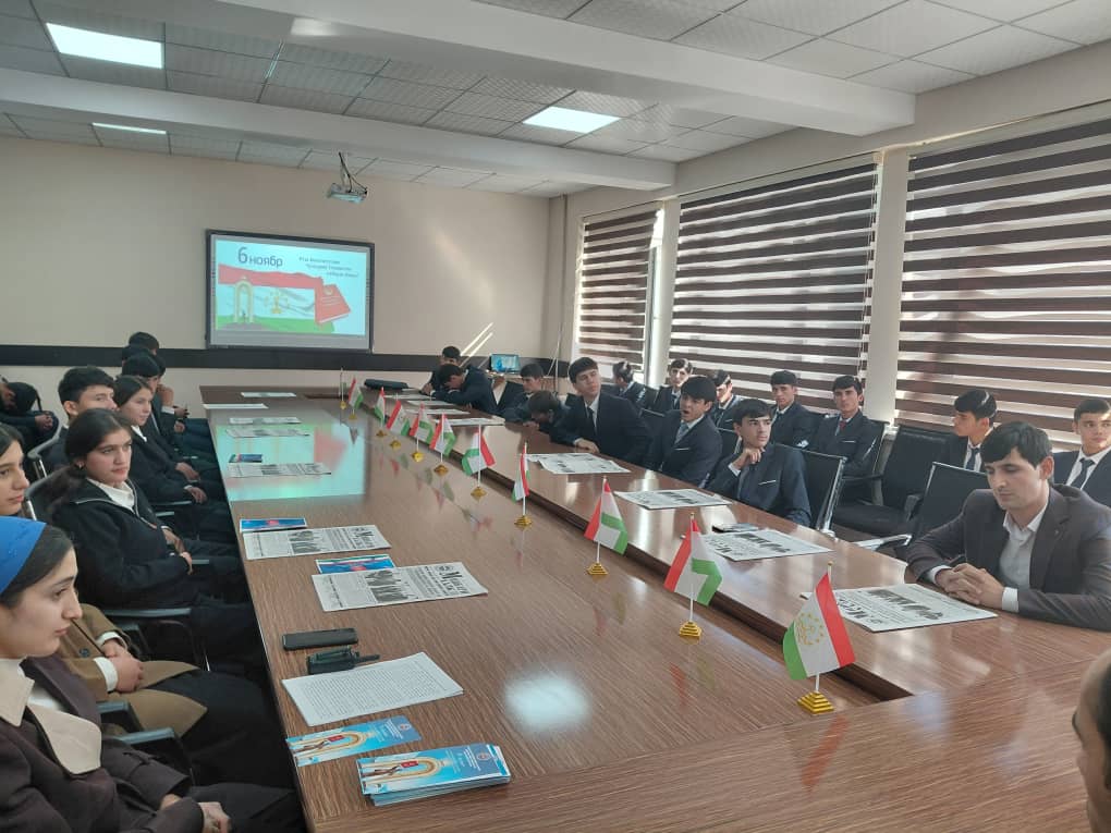Санаи 05.11.2025. дар толори маҷлисгоҳи МДТ «Литсейи касбии техникии сохтмони шаҳри Душанбе»-и бо иштироки Усмонзода Муслим мудири шубаи кор бо чавонони Кумитаи ичроияи Хизби халкии демократии Тоҷикистон дар шаҳри Душанбе, омузгорону хонандагон дар мавзуи «Конститутсия санади сарнавиштсоз» мизи мудаввар баргузор гардид.